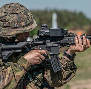 The British Army has adopted the SMASH SmartSight system, an AI-enhanced targeting technology mounted on rifles such as the SA80 A3. Developed by Smart Shooter, this system uses computer vision and machine learning to track fast-moving drones. It only allows the shooter to fire when the system has calculated a high-probability hit, reducing waste and maximizing accuracy.